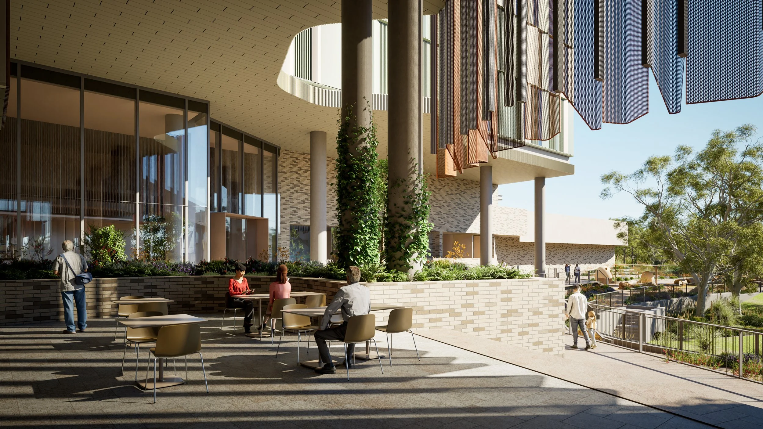This soffit sits above the creche, retail areas and café spaces. It will be an entry point for those accessing the Women and Babies Hospital from Fiona Stanley Hospital.